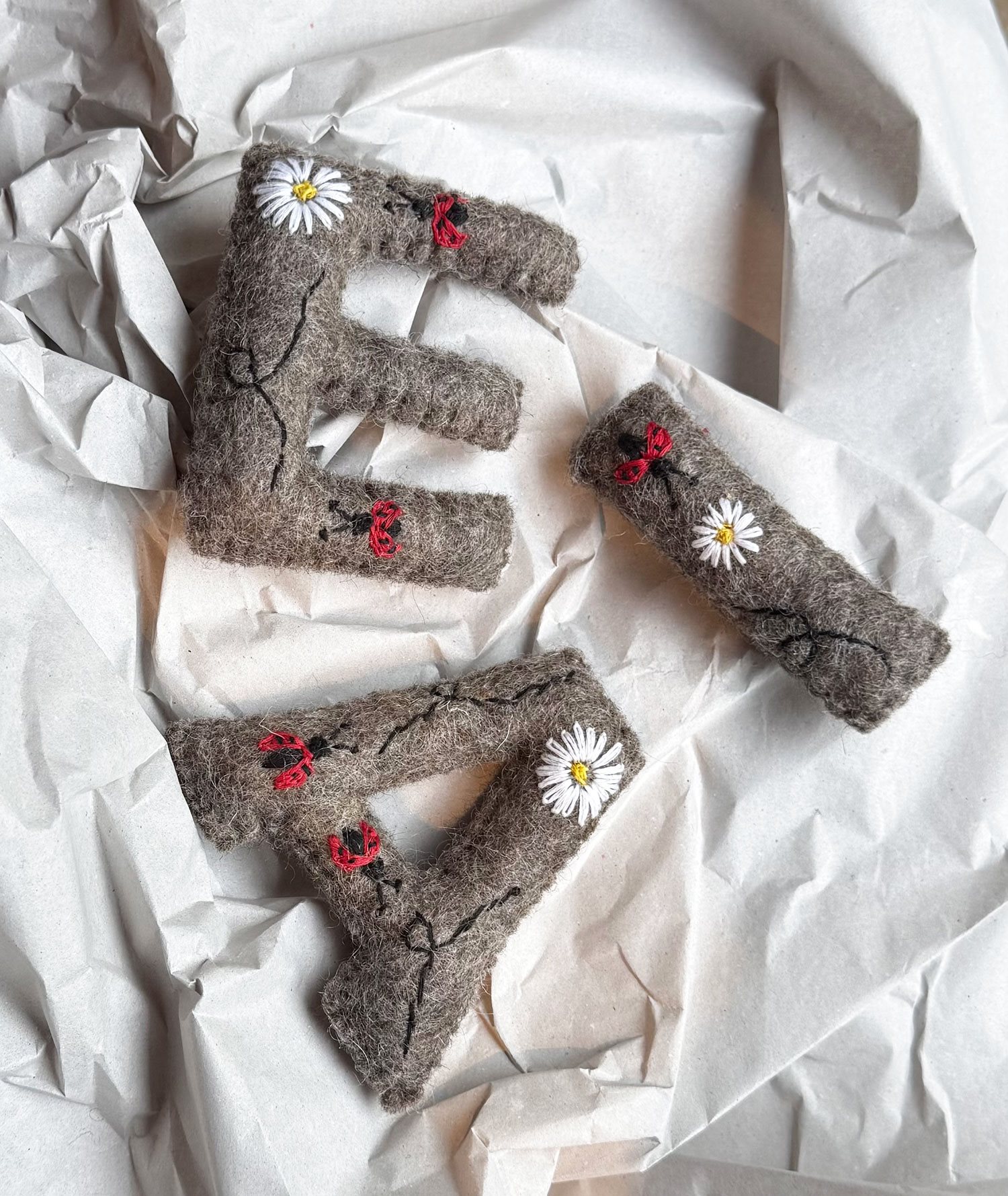 Med vores håndlavede filtbogstaver kan du skabe en unik navneguirlande, der tilføjer både varme og charme til indretningen. Hver enkelt bogstav er nænsomt fremstillet i hånden af dygtige håndværkere i Nepal, med fokus på detaljer og kvalitet. Brug guirlanden til at skrive barnets navn eller et særligt ord – perfekt over sengen, puslebordet eller som en gave til en nyfødt. Vores filtbogstaver er ikke kun dekorative, men også en meningsfuld måde at støtte kvinder i Nepal gennem traditionelt håndværk. En personlig gave fyldt med omtanke og kærlighed.