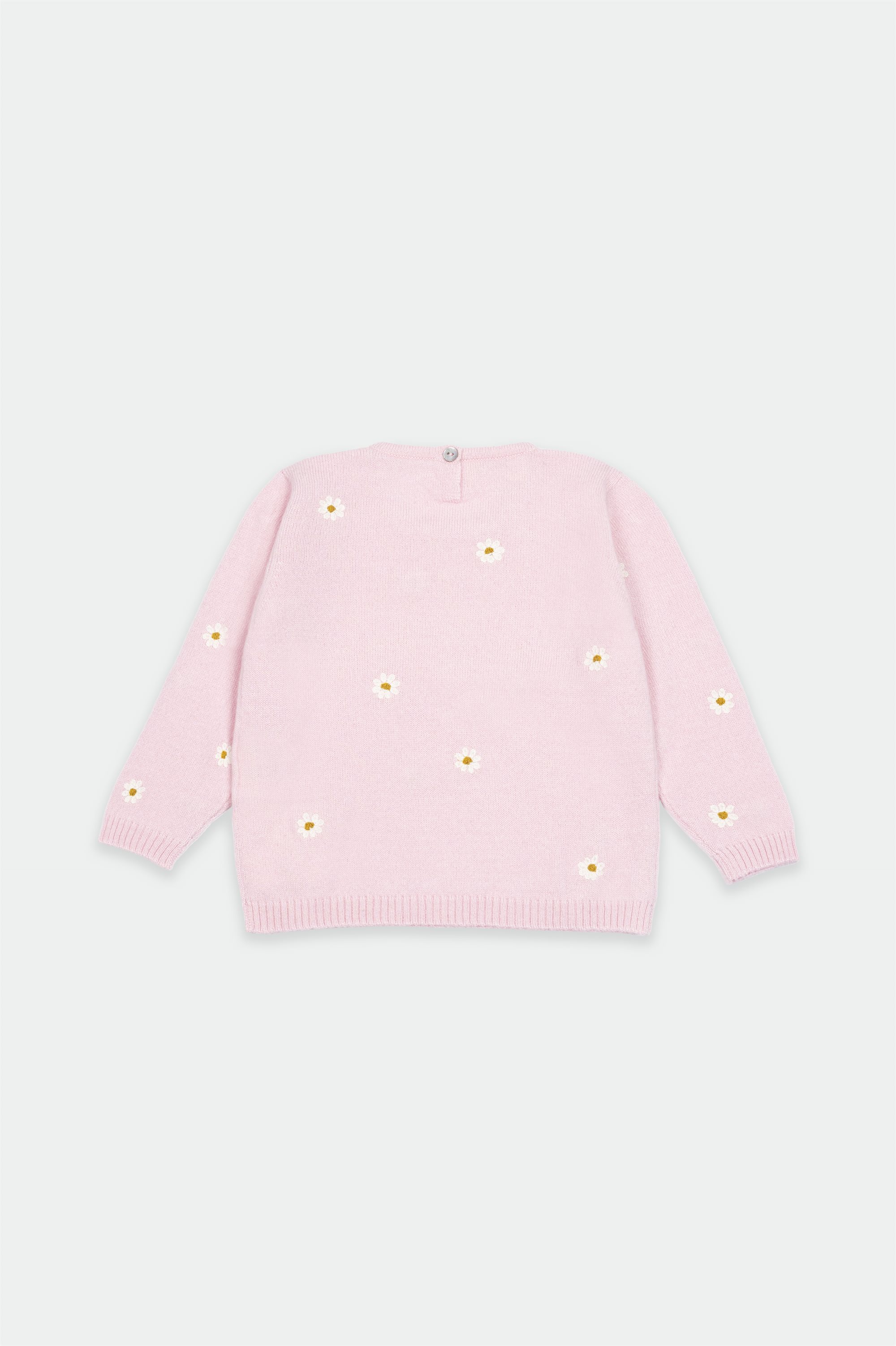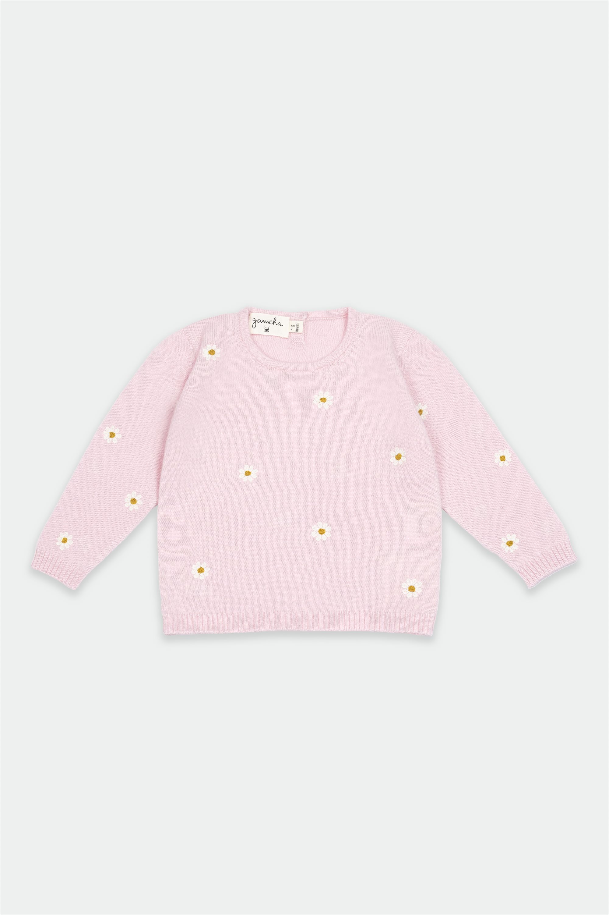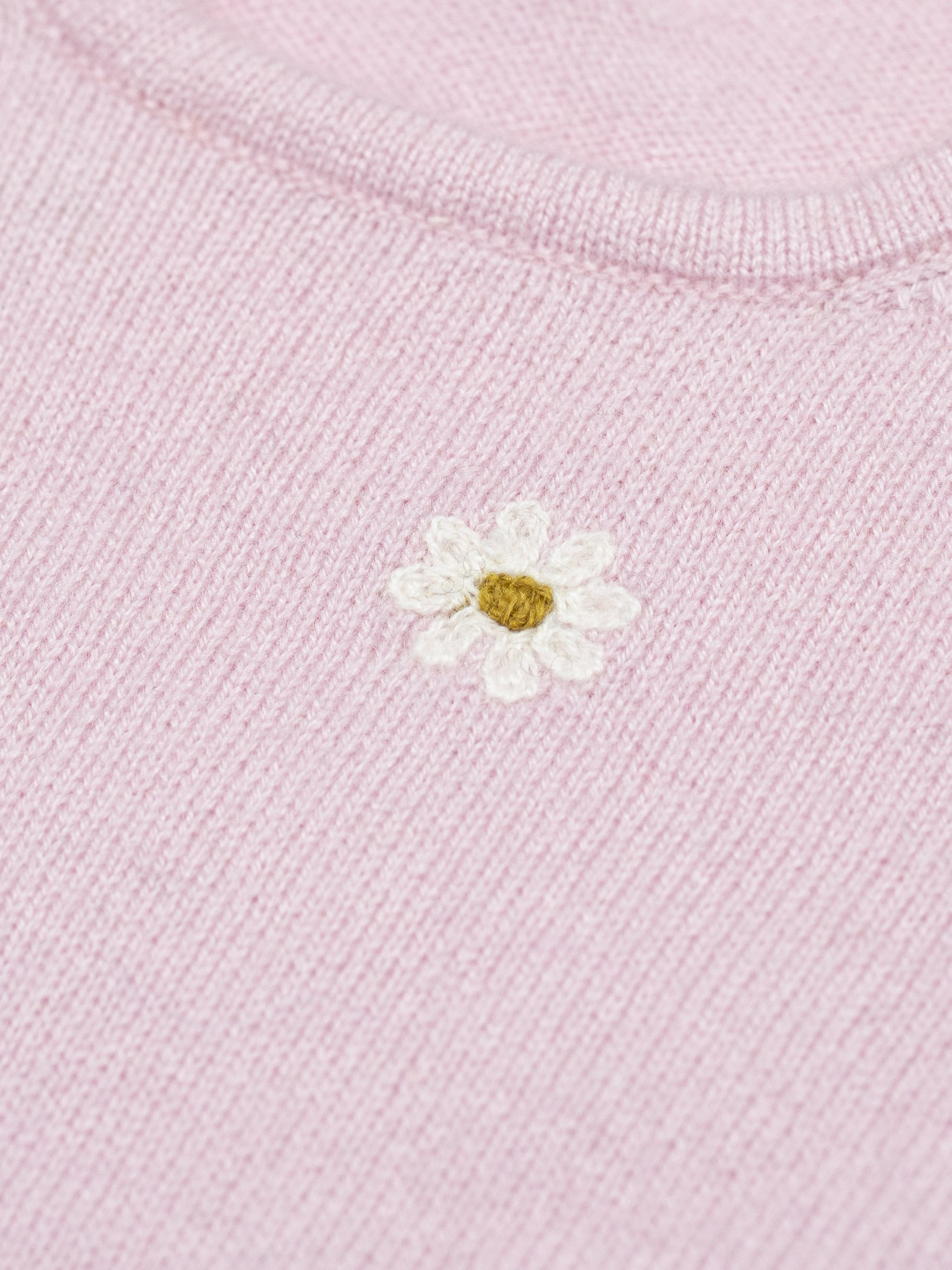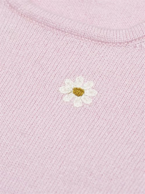 Smukkeste og blødeste bluse med håndlavet blomster i lyserød. Spundet i 100% cashmere.